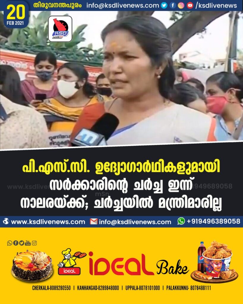 പി.എസ്.സി. ഉദ്യോഗാര്‍ഥികളുമായി സര്‍ക്കാരിന്റെ ചര്‍ച്ച ഇന്ന് നാലരയ്ക്ക്; ചര്‍ച്ചയില്‍ മന്ത്രിമാരില്ല