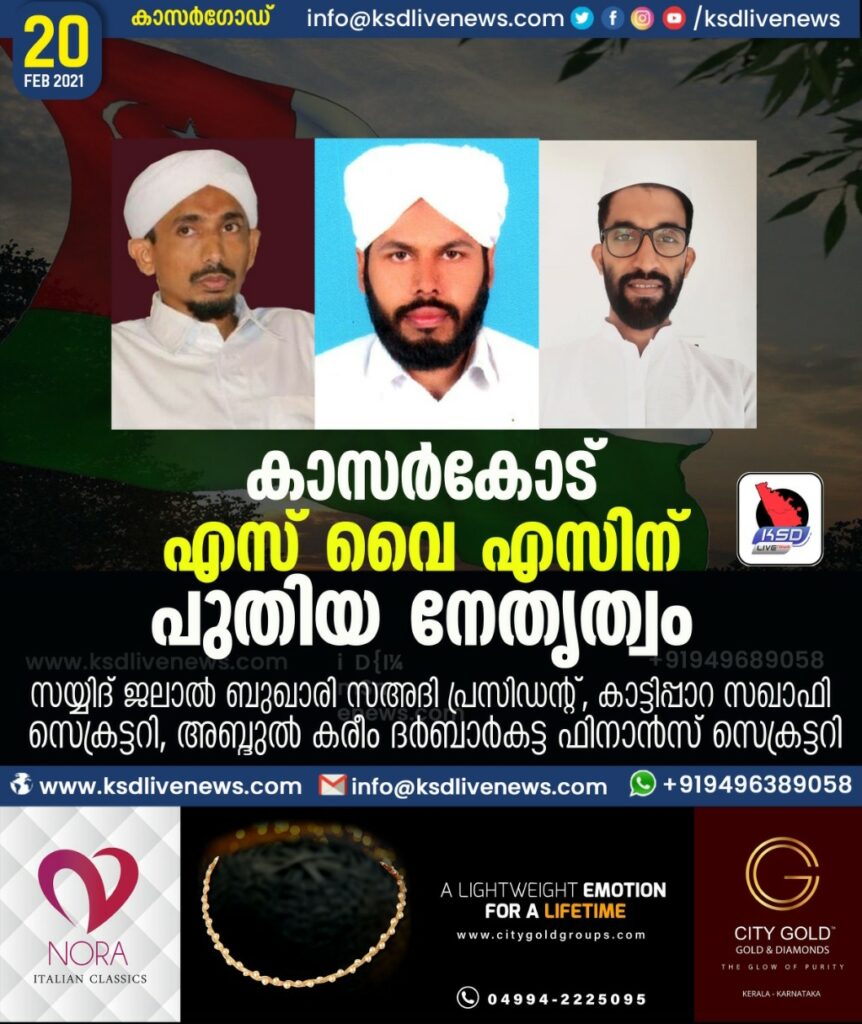 എസ് വൈ എസ് കാസർകോട് ജില്ല സാരഥികളായി തെരെഞ്ഞെടുക്കപ്പെട്ട സയ്യിദ് അഹ്മദ് ജലാലുദ്ദീൻ ബുഖാരി സഅദി (പ്രസിഡന്റ്) അബ്ദുൽ ഖാദിർ സഖാഫി കാട്ടിപ്പാറ (ജനറൽ സെക്രട്ടറി) അബ്ദുൽ കരീം ദർബർകട്ട (ഫൈനാൻസ് സെക്രട്ടറി)