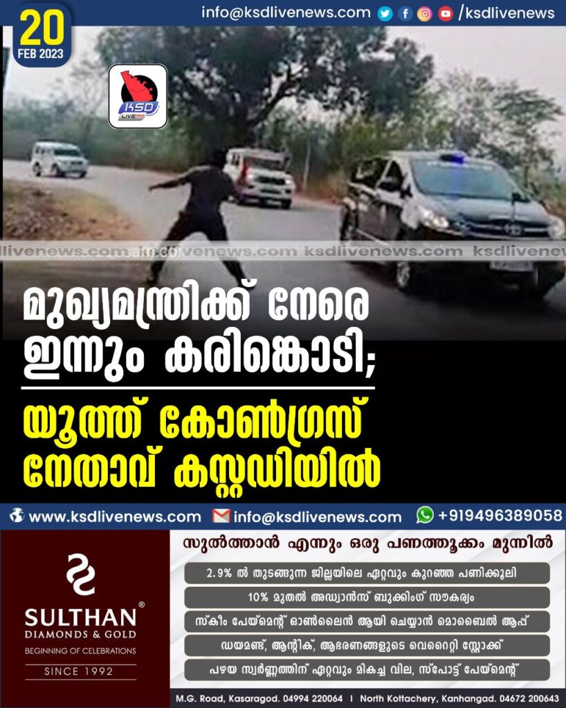 മുഖ്യമന്ത്രിക്ക് നേരെ ഇന്നും കരിങ്കൊടി; യൂത്ത് കോണ്‍ഗ്രസ് നേതാവ് കസ്റ്റഡിയില്‍