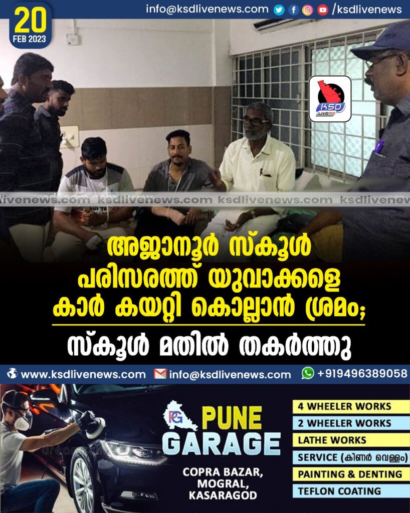 അജാനൂർ സ്കൂള് പരിസരത്ത് യുവാക്കളെ കാര് കയറ്റി കൊല്ലാന് ശ്രമം; സ്കൂള് മതില് തകര്ത്തു