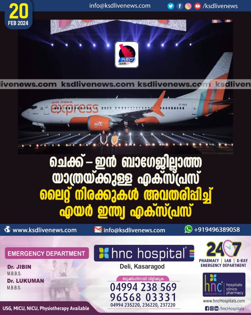 ചെക്ക്-ഇന് ബാഗേജില്ലാത്ത യാത്രയ്ക്കുള്ള എക്സ്പ്രസ് ലൈറ്റ് നിരക്കുകള് അവതരിപ്പിച്ച് എയര് ഇന്ത്യ എക്സ്പ്രസ്