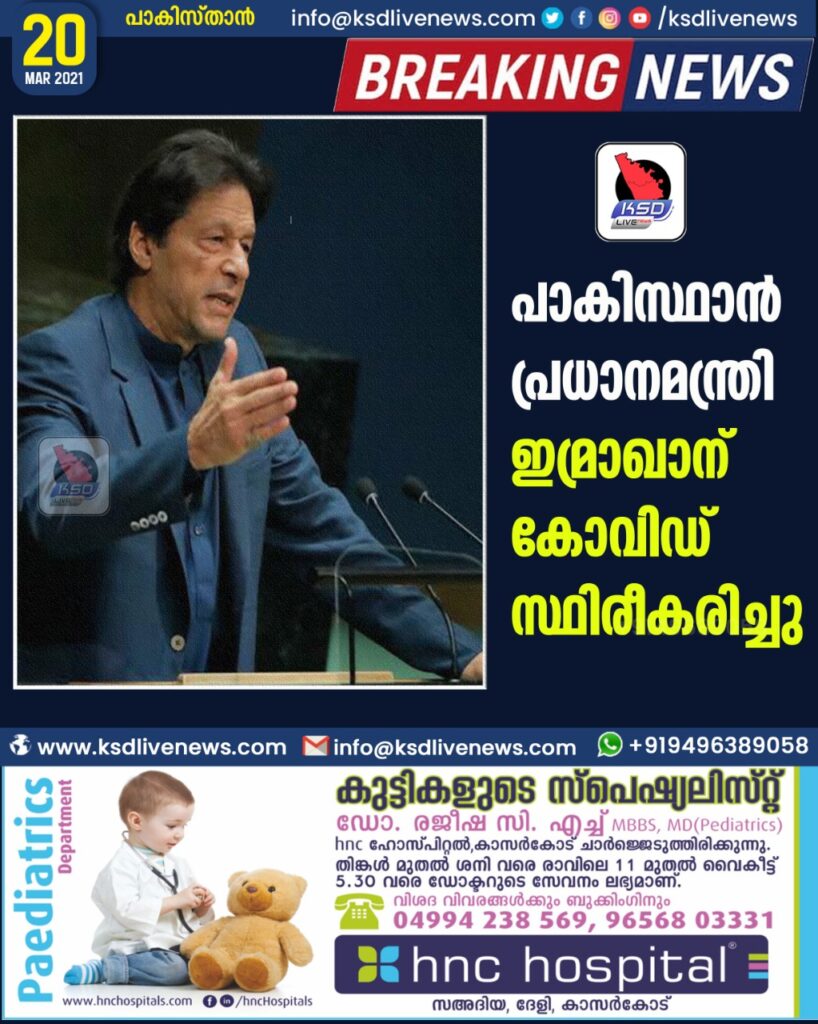 പാകിസ്ഥാൻ പ്രധാനമന്ത്രി ഇമ്രാഖാന് കോവിഡ് സ്ഥിരീകരിച്ചു