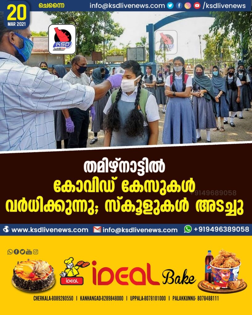 തമിഴ്നാട്ടില് കോവിഡ് കേസുകള് വര്ധിക്കുന്നു; സ്കൂളുകള് അടച്ചു
