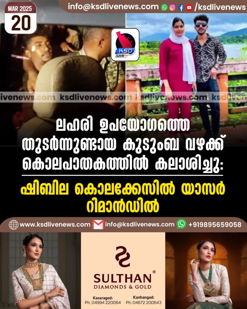 ലഹരി ഉപയോഗത്തെ തുടര്ന്നുണ്ടായ കുടുംബ വഴക്ക് കൊലപാതകത്തില് കലാശിച്ചു: ഷിബില കൊലക്കേസില് യാസര് റിമാൻഡില്