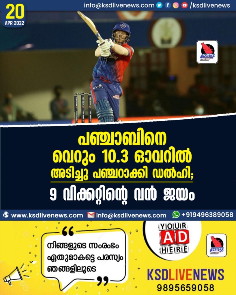പഞ്ചാബിനെ വെറും 10.3 ഓവറിൽ അടിച്ചു പഞ്ചറാക്കി ഡൽഹി; 9 വിക്കറ്റിന്റെ വൻ ജയം