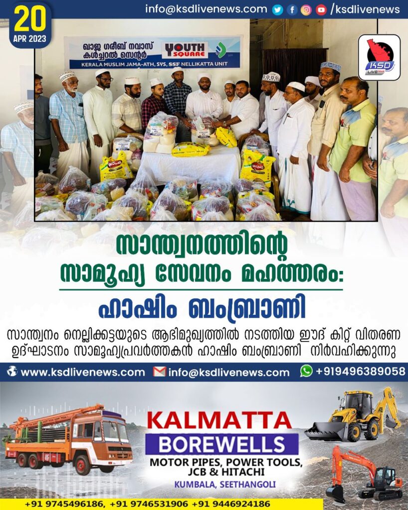 വിശുദ്ധ റമദാനിലെ പവിത്ര ദിനങ്ങൾ മുൻനിർത്തി എസ് വൈ എസ് സാന്ത്വനം നടത്തിക്കൊണ്ടിരിക്കുന്ന സാമൂഹ്യ സേവനങ്ങൾ വിലമതിക്കാനാവാത്തതെന്ന് സാമൂഹ്യ പ്രവർത്തകൻ ഹാഷിം ബംബ്രാണി അഭിപ്രായപ്പെട്ടു. സമൂഹത്തിന്റെ താഴെക്കിടയിൽ ഉള്ളവരെ സാമ്പത്തികമായി മാത്രമല്ല, സാമൂഹികമായും വിദ്യാഭ്യാസപരമായും ഉയർത്തിക്കൊണ്ടു വരുവാൻ ‘സാന്ത്വനം’ മുന്നോട്ടുവരണമെന്നും അദ്ദേഹം കൂട്ടിച്ചേർത്തു.