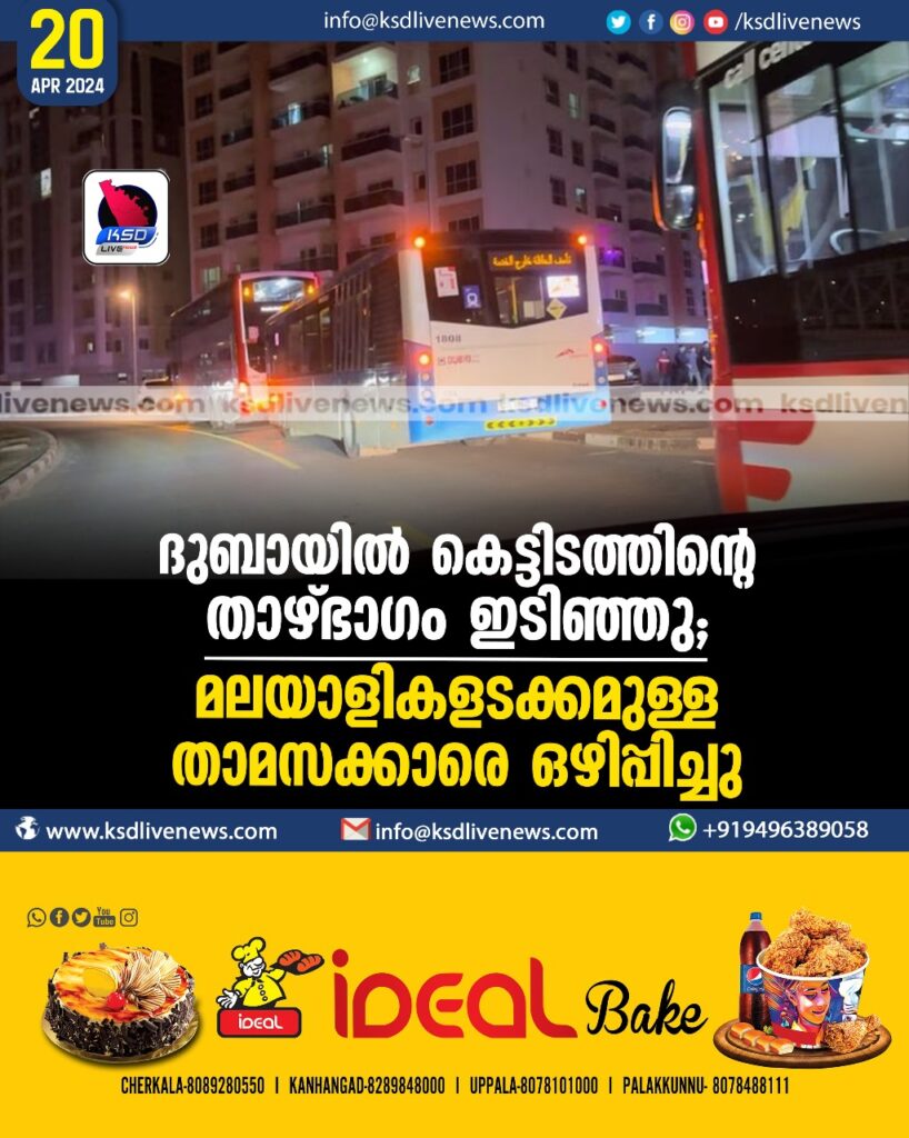 ദുബായില് കെട്ടിടത്തിന്റെ താഴ്ഭാഗം ഇടിഞ്ഞു; മലയാളികളടക്കമുള്ള താമസക്കാരെ ഒഴിപ്പിച്ചു