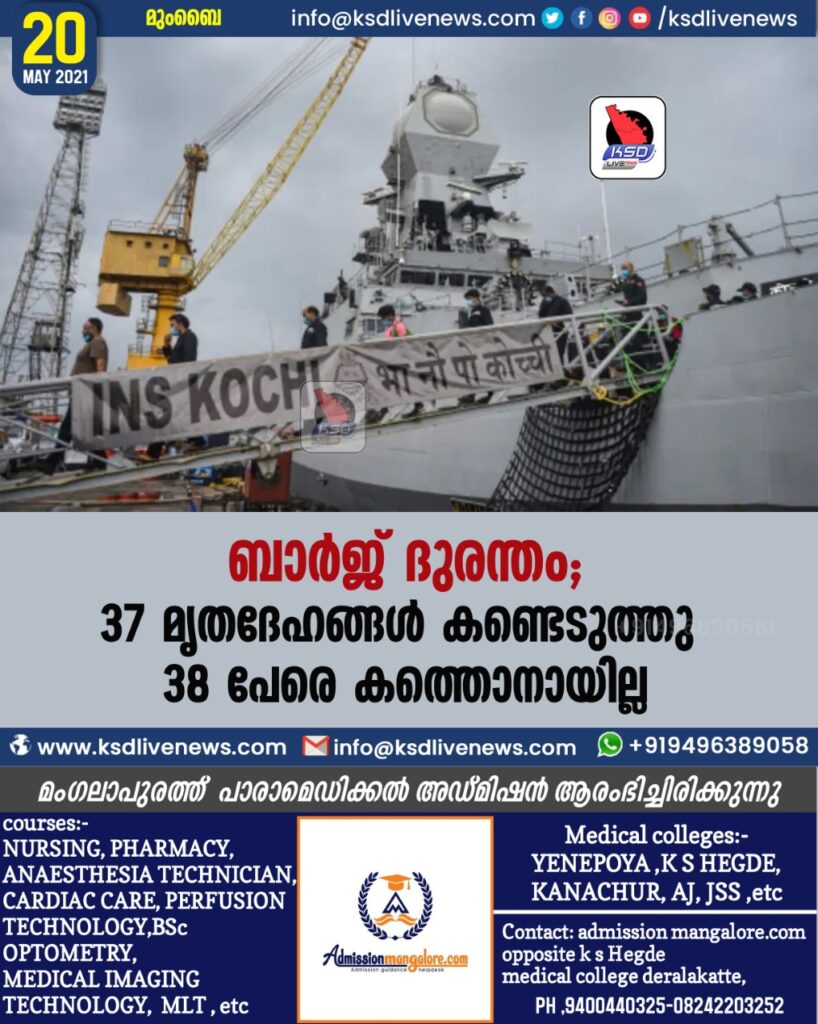 ബാര്‍ജ് ദുരന്തം: 37 മൃതദേഹങ്ങള്‍ കണ്ടെടുത്തു, 38 പേരെ കണ്ടെത്താനായില്ല