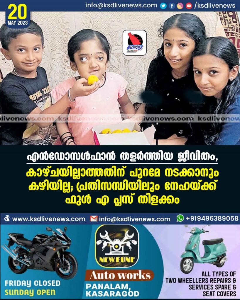 എൻഡോസൾഫാൻ തളർത്തിയ ജീവിതം, കാഴ്ചയില്ലാത്തതിന് പുറമേ നടക്കാനും കഴിയില്ല; പ്രതിസന്ധിയിലും നേഹയ്ക്ക് ഫുൾ എ പ്ലസ് തിളക്കം
