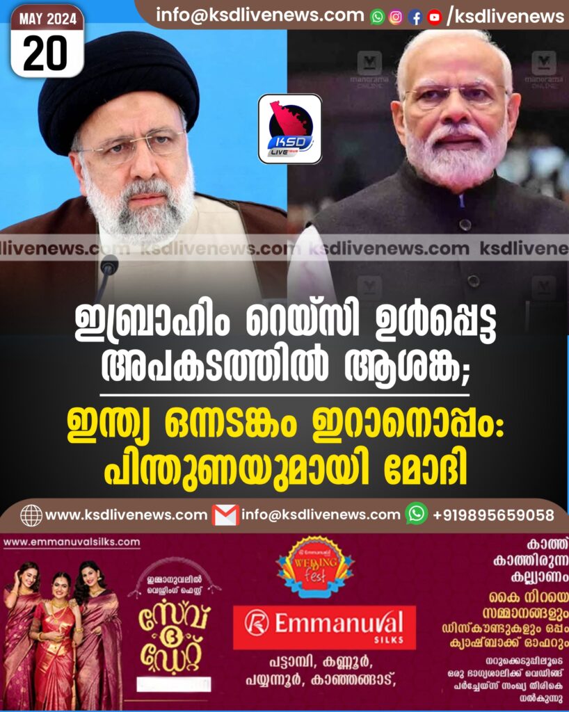 ഇബ്രാഹിം റെയ്സി ഉൾപ്പെട്ട അപകടത്തിൽ ആശങ്ക; ഇന്ത്യ ഒന്നടങ്കം ഇറാനൊപ്പം: പിന്തുണയുമായി മോദി