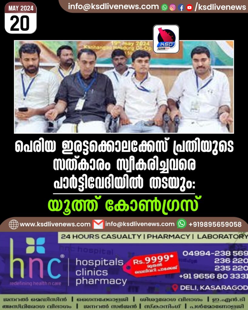 ഇരട്ടക്കൊലക്കേസ് പ്രതിയുടെ സത്കാരം സ്വീകരിച്ചവരെ പാർട്ടിവേദിയിൽ തടയും: യൂത്ത് കോൺഗ്രസ്