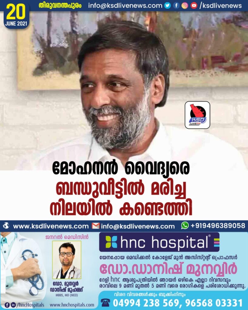 മോഹനൻ വൈദ്യരെ ബന്ധുവീട്ടിൽ മരിച്ച നിലയിൽ കണ്ടെത്തി