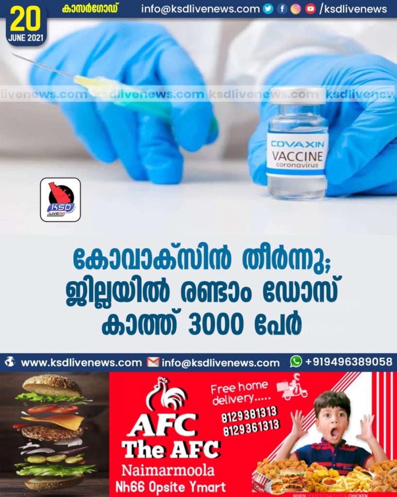 കോവാക്സിൻ തീർന്നു : ജില്ലയിൽ രണ്ടാം ഡോസ് കാത്ത് 3000 പേർ
