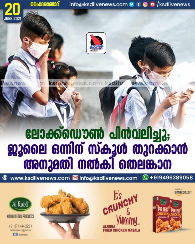 ലോക്ക്ഡൌണ് പിന്വലിച്ചു ; ജൂലൈ ഒന്നിന് സ്കൂള് തുറക്കാന് അനുമതി നല്കി തെലങ്കാന