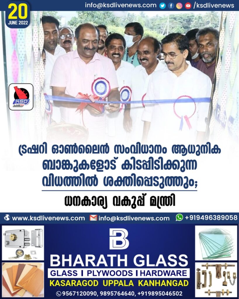 ചട്ടഞ്ചാല്‍ സബ്ട്രഷറിക്കായി നിര്‍മിച്ച പുതിയ കെട്ടിടത്തിന്റെ ഉദ്ഘാടനം നിര്‍വഹിച്ചു സംസാരിക്കുകയായിരുന്നു മന്ത്രി .സി എച്ച് കുഞ്ഞമ്പു എംഎല്‍എ അധ്യക്ഷത വഹിച്ചു. ട്രഷറികൾ ജനകീയമായി കൊണ്ടിരിക്കുകയാണ് ആധുനിക ബാങ്കുകളുടെ സൗകര്യങ്ങള്ളിലേക്ക് ട്രഷറികൾ ഉയർന്നു. 25 ട്രഷറികളുടെ നവീകരണ പ്രവർത്തനങ്ങൾ നടക്കുകയാണന്നും മന്ത്രി പറഞ്ഞു. ഭിന്നശേഷി സൗഹൃദവും വയോജനസൗഹദവ്യമായി ട്രഷറികളെ നവീകരിക്കുമെന്നും മന്ത്രി പറഞ്ഞു.