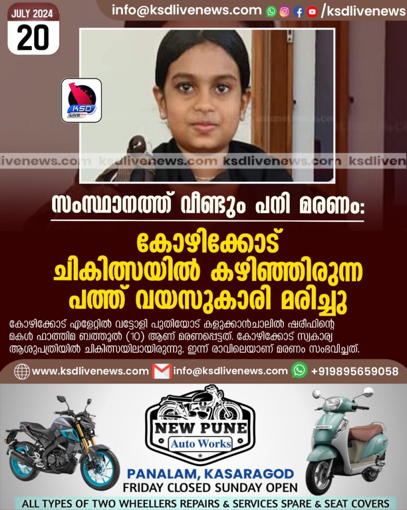 സംസ്ഥാനത്ത് വീണ്ടും പനി മരണം: കോഴിക്കോട് ചികിത്സയിൽ കഴിഞ്ഞിരുന്ന പത്ത് വയസുകാരി മരിച്ചു