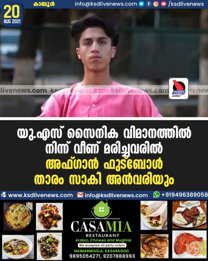 യു.എസ് സൈനിക വിമാനത്തില്‍നിന്ന് വീണ് മരിച്ചവരില്‍ അഫ്ഗാന്‍ ഫുട്‌ബോള്‍ താരം സാകി അന്‍വരിയും