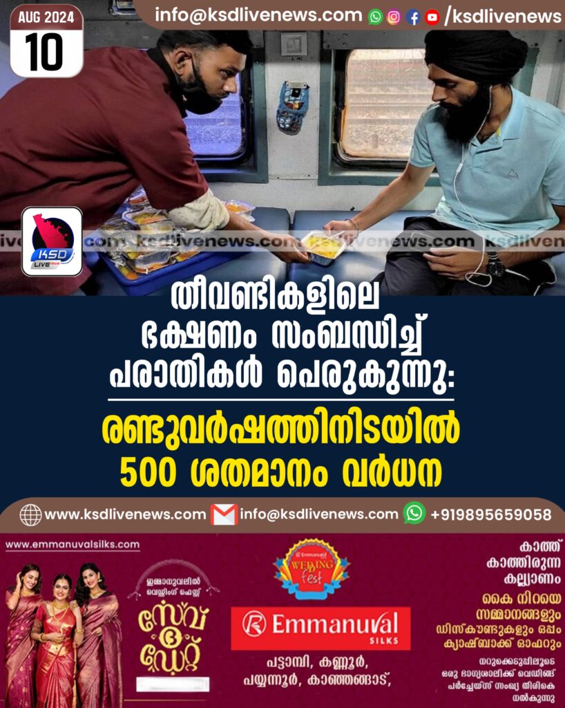 തീവണ്ടികളിലെ ഭക്ഷണം സംബന്ധിച്ച് പരാതികൾ പെരുകുന്നു: രണ്ടുവർഷത്തിനിടയിൽ 500 ശതമാനം വർധന