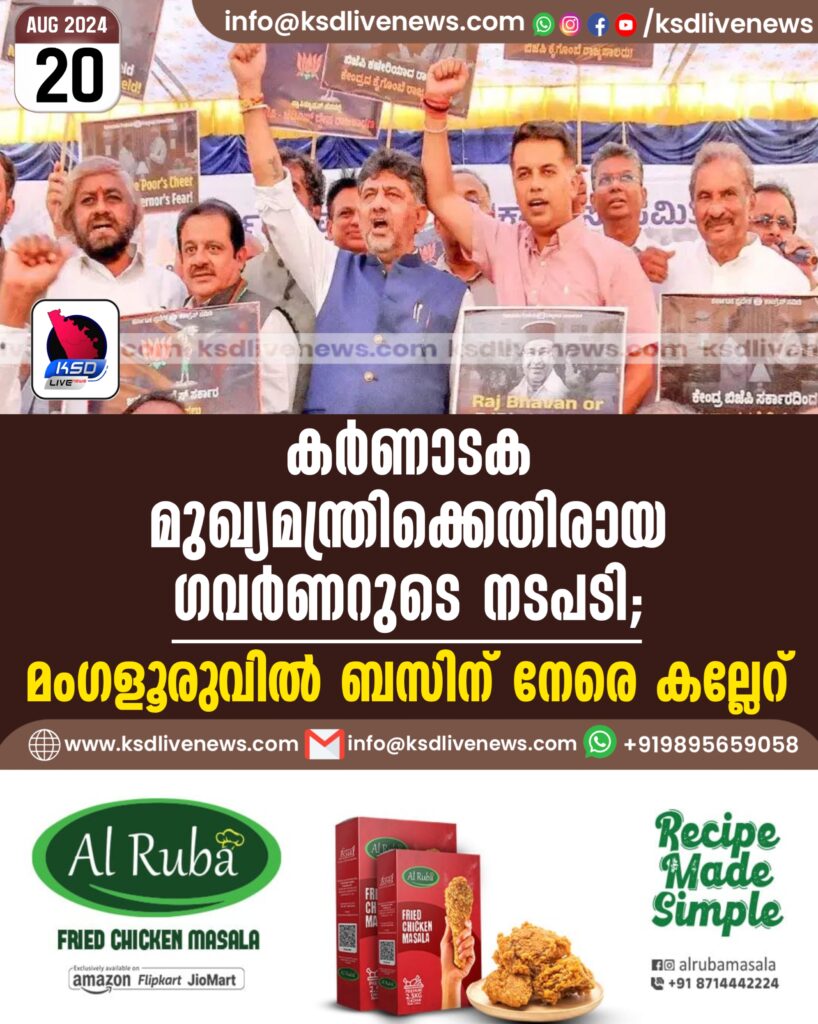 കര്ണാടക മുഖ്യമന്ത്രിക്കെതിരായ ഗവര്ണറുടെ നടപടി; മംഗളൂരുവില് ബസിന് നേരെ കല്ലേറ്