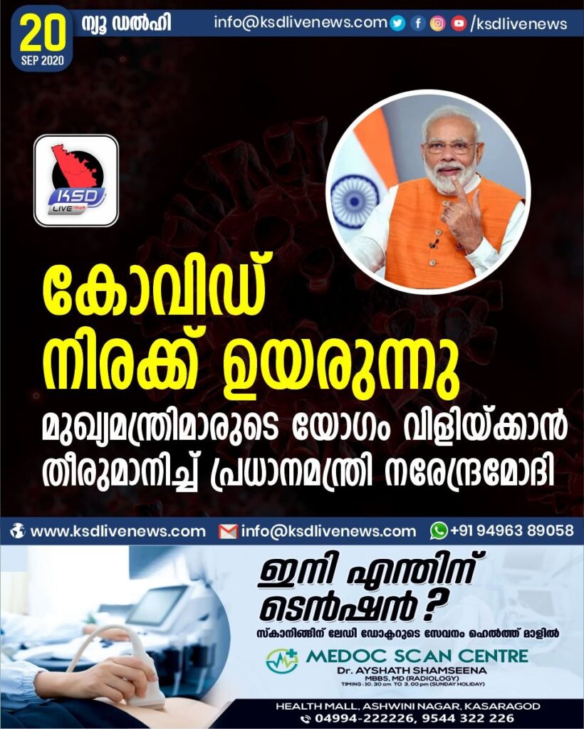 കോവിഡ് നിരക്ക് ഉയരുന്നു : മുഖ്യമന്ത്രിമാരുടെ യോഗം വിളിയ്ക്കാന് തീരുമാനിച്ച് പ്രധാനമന്ത്രി നരേന്ദ്രമോദി