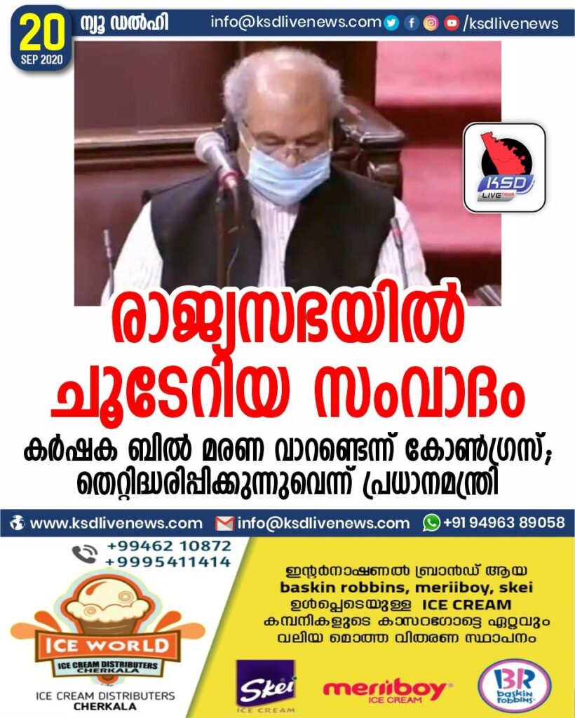 രാജ്യസഭയില് ചൂടേറിയ സംവാദം; കര്ഷക ബില് മരണ വാറണ്ടെന്ന് കോണ്ഗ്രസ്; തെറ്റിദ്ധരിപ്പിക്കുന്നുവെന്ന് പ്രധാനമന്ത്രി