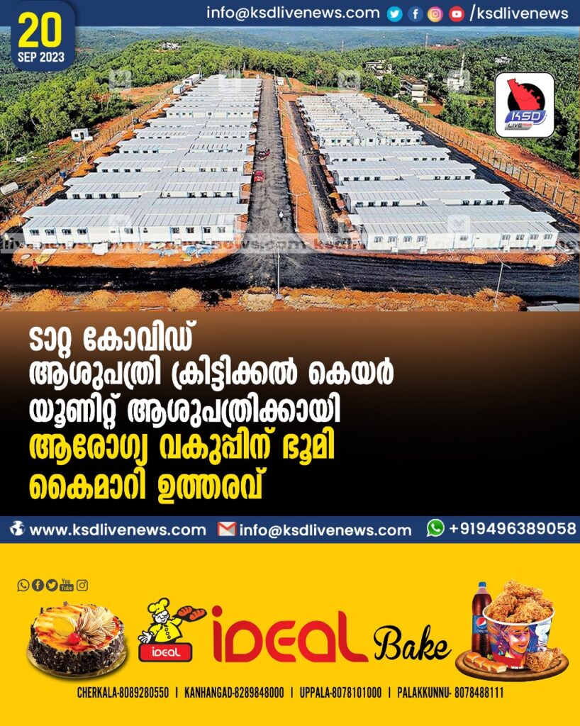 ടാറ്റ കോവിഡ് ആശുപത്രി ക്രിട്ടിക്കൽ കെയർ യൂണിറ്റ് ആശുപത്രിക്കായി ആരോഗ്യ വകുപ്പിന് ഭൂമി കൈമാറി ഉത്തരവ്