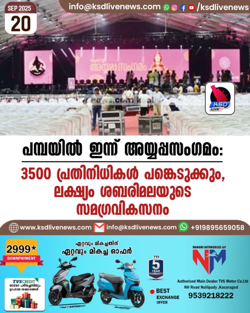 പമ്പയിൽ ഇന്ന് അയ്യപ്പസംഗമം; 3500 പ്രതിനിധികൾ പങ്കെടുക്കും, ലക്ഷ്യം ശബരിമലയുടെ സമഗ്രവികസനം