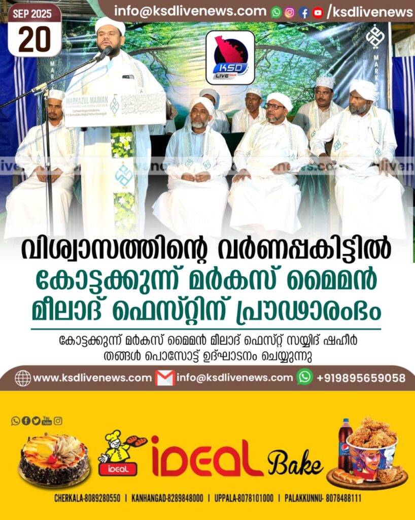 മൊഗ്രാൽ പുത്തൂർ: തിരു വസന്തം 1500 എന്ന ശീർഷകത്തിൽ കോട്ടക്കുന്നിൽ പ്രവർത്തിക്കുന്ന മർകസ് മൈമൻ കാമ്പസ് മീലാദ് ഫെസ്റ്റിന് പ്രൗഢമായ തുടക്കം.പൊസോട്ട് സയ്യിദ് ഷഹീർ തങ്ങൾ ഉദ്‌ഘാടനം നിർവഹിച്ചു.