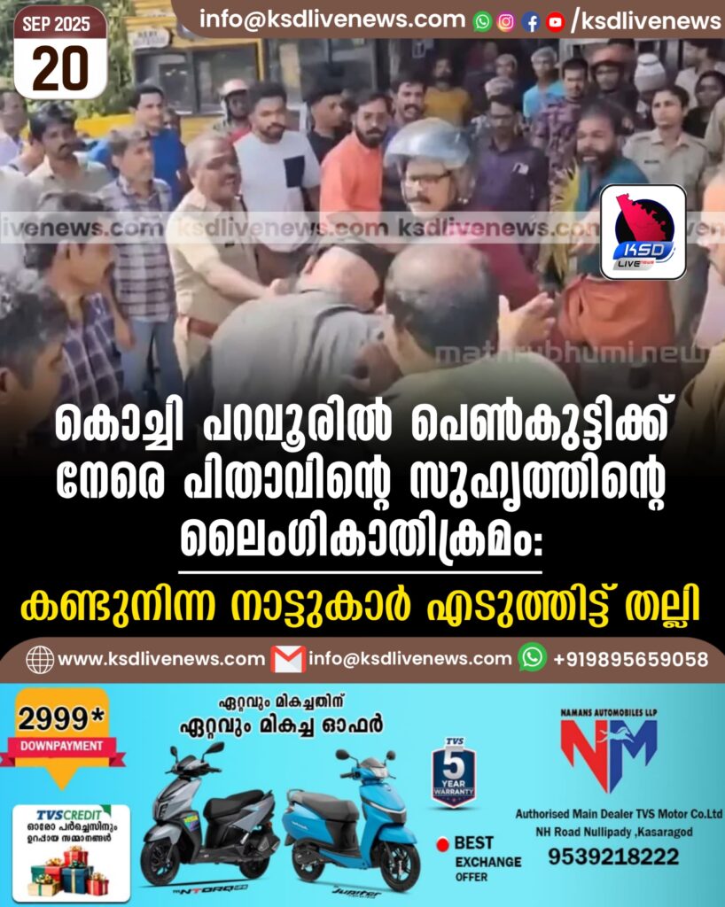 കൊച്ചി പറവൂരിൽ പെൺകുട്ടിക്ക് നേരെ പിതാവിന്റെ സുഹൃത്തിന്റെ ലൈംഗികാതിക്രമം: കണ്ടുനിന്ന നാട്ടുകാർ എടുത്തിട്ട് തല്ലി