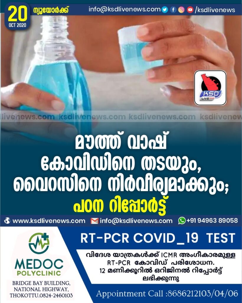 മൗത്ത് വാഷ് കോവിഡിനെ തടയും , വൈറസിനെ നിർവീര്യമാക്കും ; പഠന റിപ്പോർട്ട്