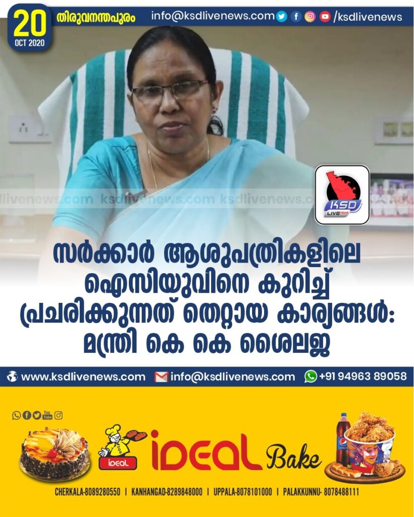 സർക്കാർ ആശുപത്രികളിലെ ഐസിയുവിനെ കുറിച്ച് പ്രചരിക്കുന്നത് തെറ്റായ കാര്യങ്ങൾ : മന്ത്രി കെകെ ശൈലജ