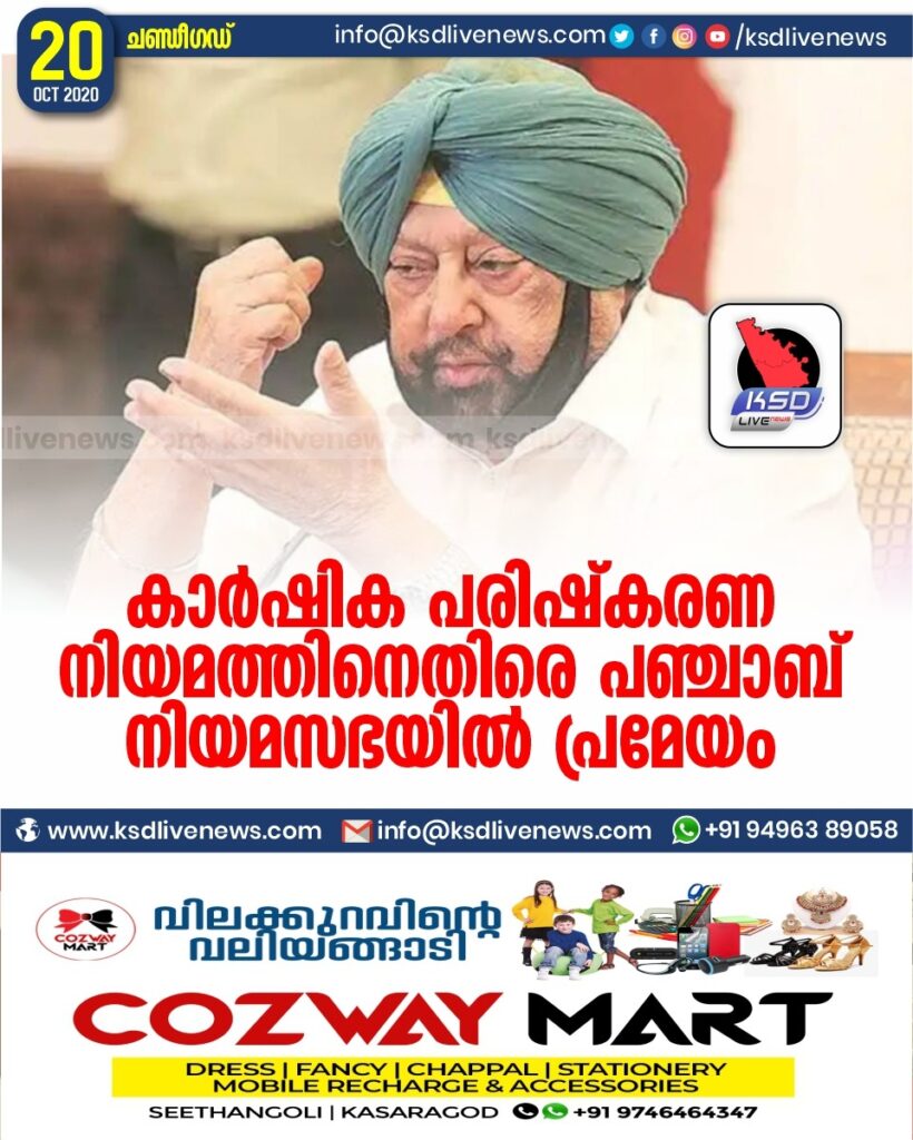 കാർഷിക പരിഷ്കരണ നിയമത്തിനെതിരെ പഞ്ചാബ് നിയമസഭയിൽ പ്രമേയം