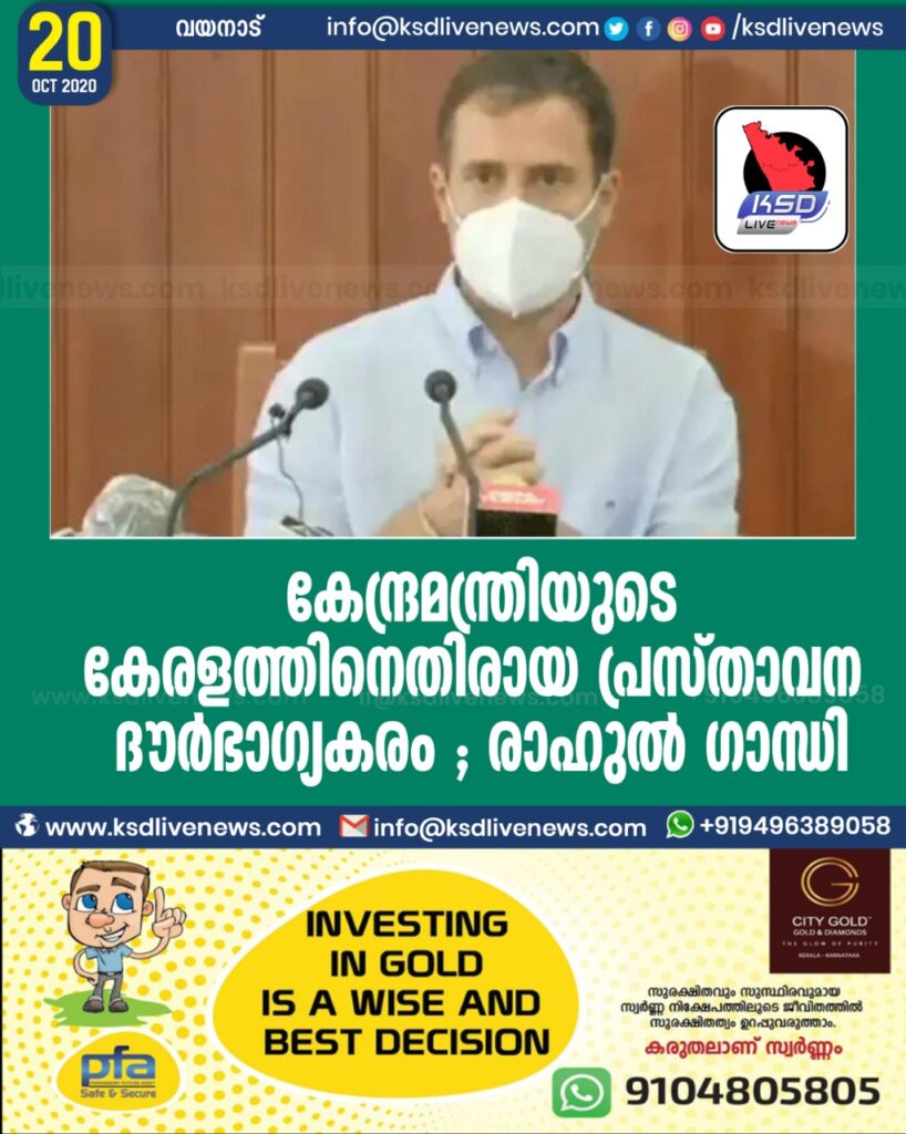 കേന്ദ്രമന്ത്രിയുടെ കേരളത്തിനെതിരായ പ്രസ്താവന ദൗർഭാഗ്യകരം ; രാഹുൽ ഗാന്ധി