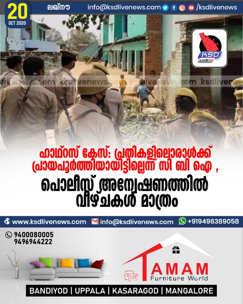 ഹാഥ്റസ് കേസ് : പ്രതികളിലൊരാൾക്ക് പ്രായപൂർത്തിയായിട്ടില്ലെന്ന് സി ബി ഐ , പൊലീസ് അന്വേഷണത്തിൽ വീഴ്ചകൾ മാത്രം