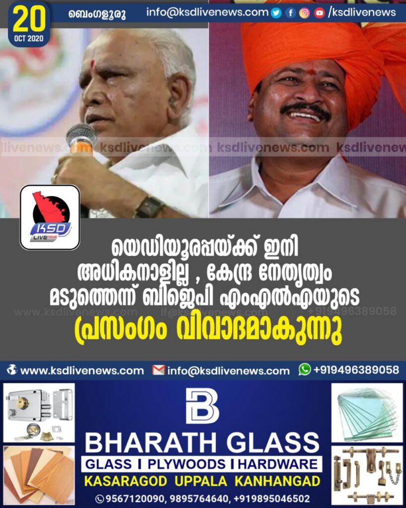 യെഡിയൂരപ്പയ്ക്ക് ഇനി അധികനാളില്ല , കേന്ദ്ര നേതൃത്വം മടുത്തെന്ന് ബിജെപി എംഎൽഎയുടെ പ്രസംഗം വിവാദമാകുന്നു
