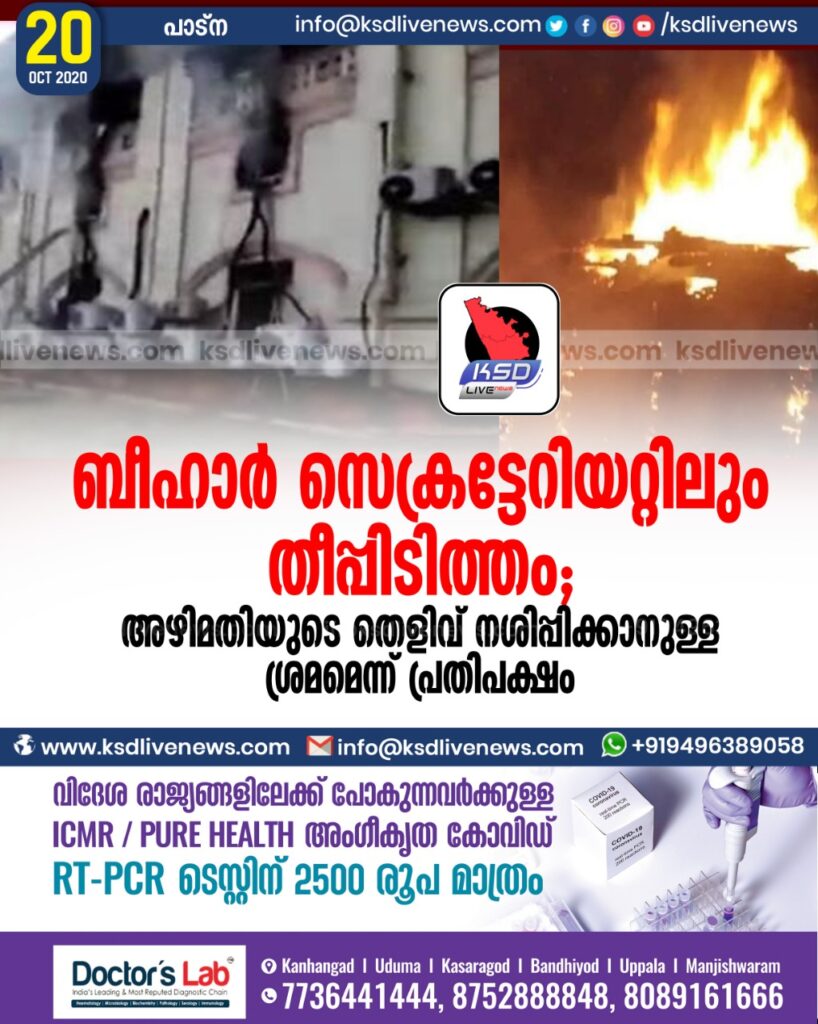 ബീഹാർ സെക്രട്ടേറിയറ്റിലും തീപ്പിടിത്തം ; അഴിമതിയുടെ തെളിവ് നശിപ്പിക്കാനുള്ള ശ്രമമെന്ന് പ്രതിപക്ഷം