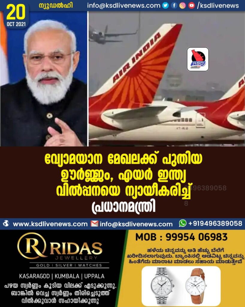 വ്യോമയാന മേഖലക്ക് പുതിയ  ഊര്‍ജ്ജം’, എയര്‍ ഇന്ത്യ വില്‍പ്പനയെ ന്യായീകരിച്ച് പ്രധാനമന്ത്രി