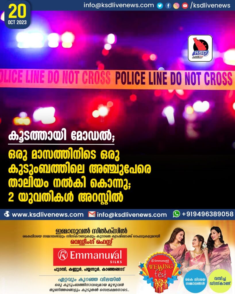 കൂടത്തായി മോഡൽ; ഒരു മാസത്തിനിടെ ഒരു കുടുംബത്തിലെ അഞ്ചുപേരെ താലിയം നൽകി കൊന്നു; 2 യുവതികൾ അറസ്റ്റിൽ