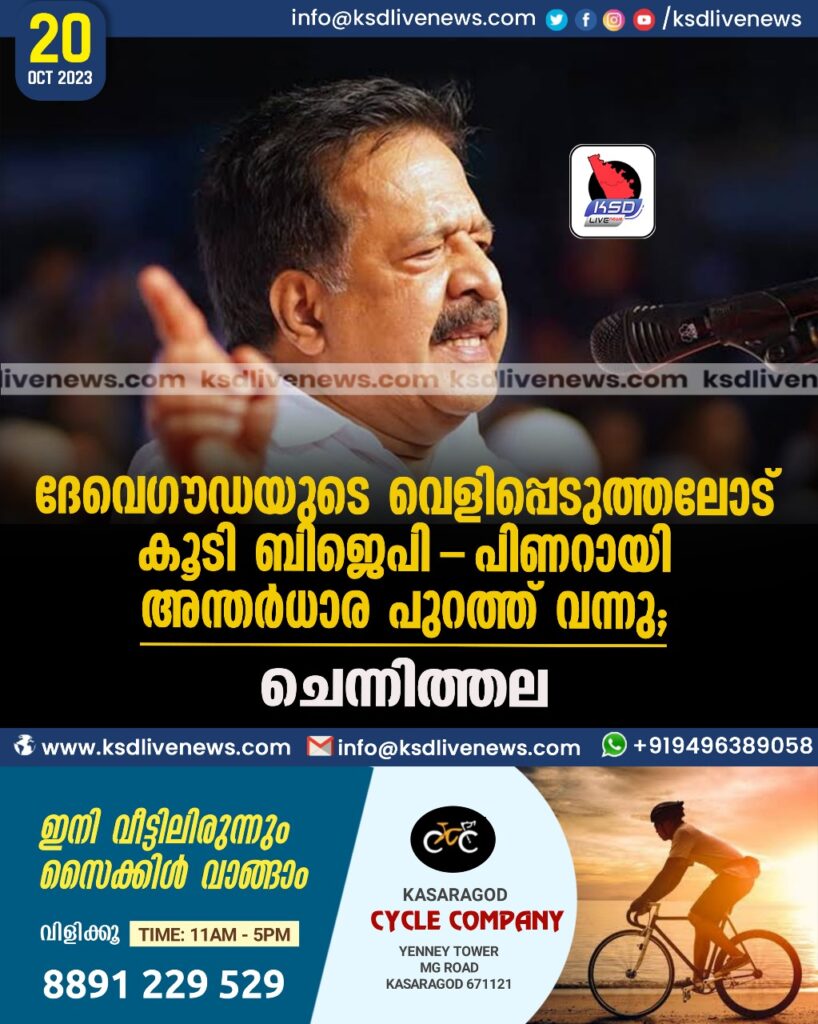 ദേവെഗൗഡയുടെ വെളിപ്പെടുത്തലോട് കൂടി ബിജെപി- പിണറായി അന്തർധാര പുറത്ത് വന്നു: ചെന്നിത്തല