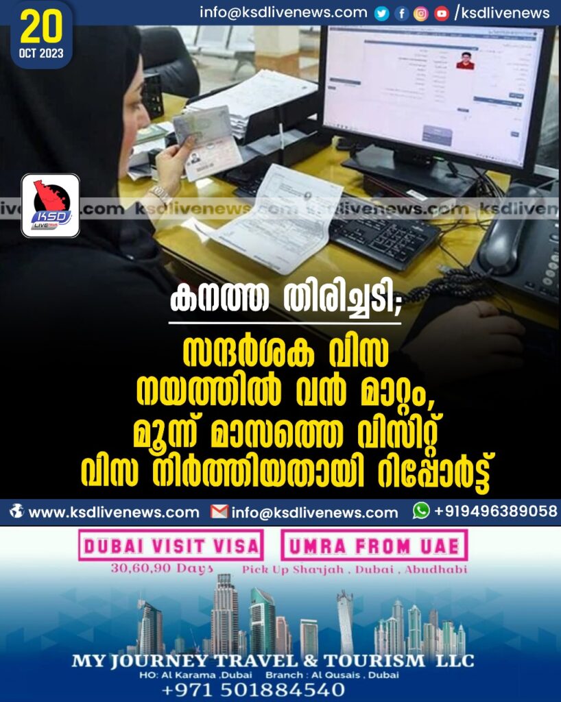 കനത്ത തിരിച്ചടി; സന്ദര്ശകവിസ നയത്തില് വന് മാറ്റം, മൂന്ന് മാസത്തെ വിസിറ്റ് വിസ നിര്ത്തിയതായി റിപ്പോര്ട്ട്
