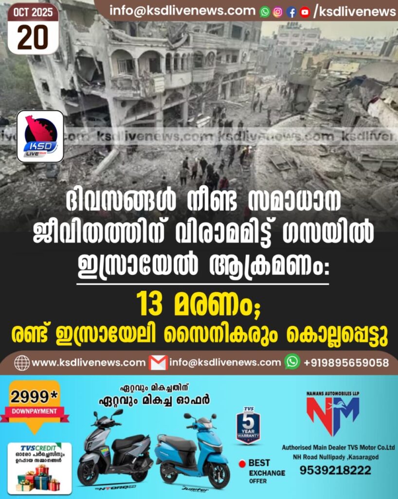 ദിവസങ്ങള് നീണ്ട സമാധാന ജീവിതത്തിന് വിരാമമിട്ട് ഗസയില് ഇസ്റാഈല് ആക്രമണം; 13 മരണം ; രണ്ട് ഇസ്റാഈലി സൈനികരും കൊല്ലപ്പെട്ടു