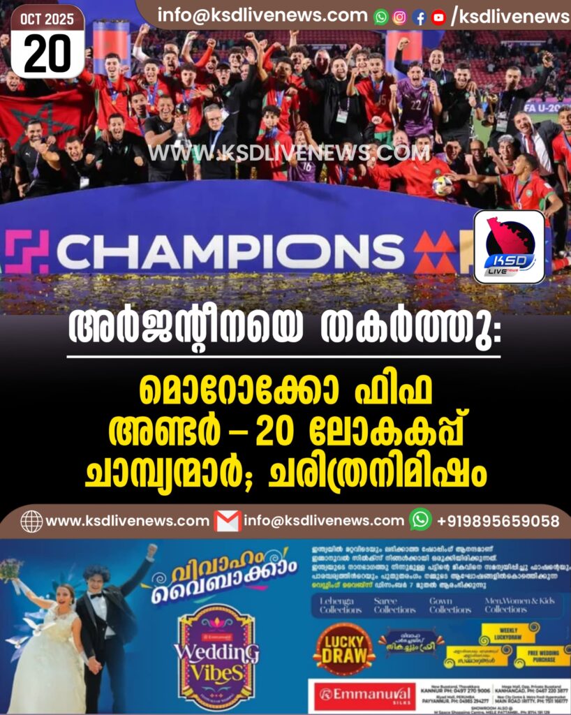 അർജന്റീനയെ തകർത്തു: മൊറോക്കോ ഫിഫ അണ്ടർ-20 ലോകകപ്പ് ചാമ്പ്യന്മാർ; ചരിത്രനിമിഷം