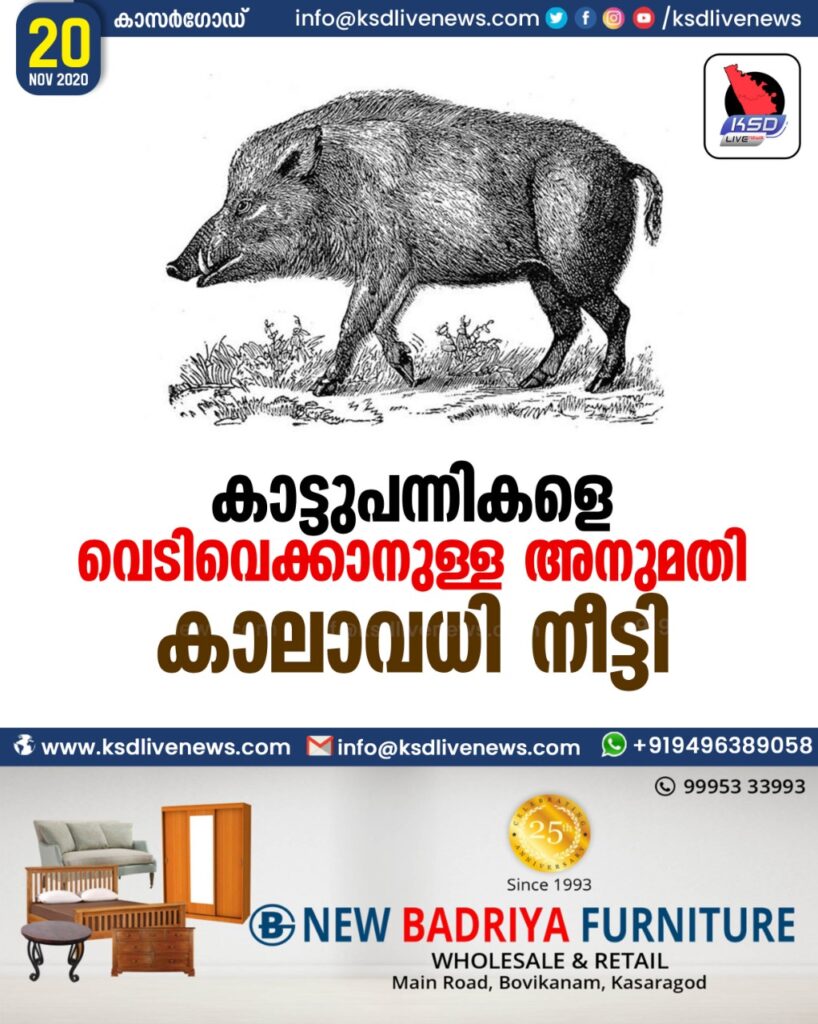 കാട്ടുപന്നികളെ വെടിവെക്കാനുള്ള അനുമതി കാലാവധി നീട്ടി