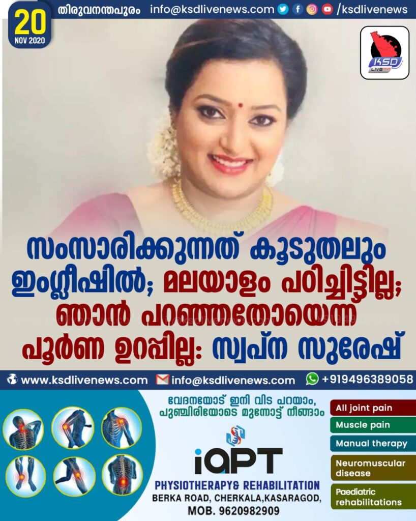 സംസാരിക്കുന്നത് കൂടുതലും ഇംഗ്ലീഷിൽ ; മലയാളം പഠിച്ചിട്ടില്ല ; ഞാൻ പറഞ്ഞതോയെന്ന് പൂർണ ഉറപ്പില്ല : സ്വപ്ന സുരേഷ്