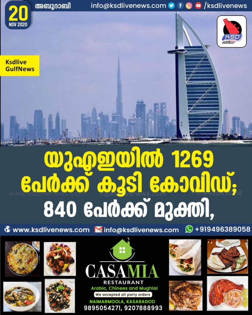 യുഎഇയിൽ 1269 പേർക്ക്കൂടി കോവിഡ്; 840 പേർക്ക് മുക്തി,