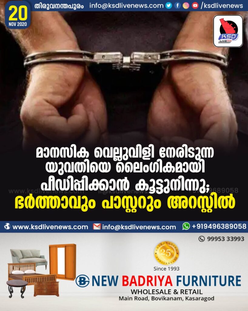 മാനസിക വെല്ലുവിളി നേരിടുന്ന യുവതിയെ ലൈംഗികമായി പീഡിപ്പിക്കാൻ കൂട്ടുനിന്നു ; ഭർത്താവും പാസ്റ്ററും അറസ്റ്റിൽ