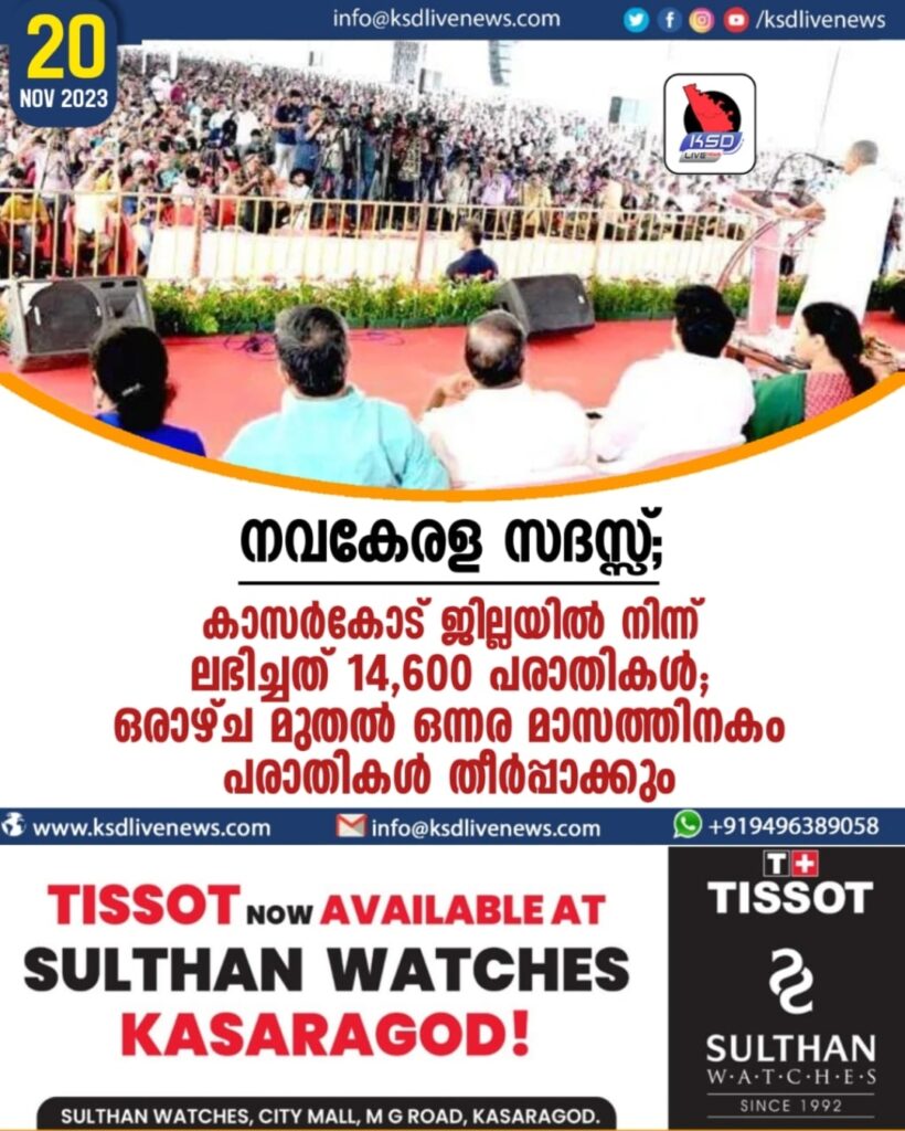 നവകേരള സദസ്സ്; കാസര്കോട് ജില്ലയില് നിന്ന് ലഭിച്ചത് 14,600 പരാതികള്; ഒരാഴ്ച മുതല് ഒന്നര മാസത്തിനകം പരാതികള് തീര്പ്പാക്കും