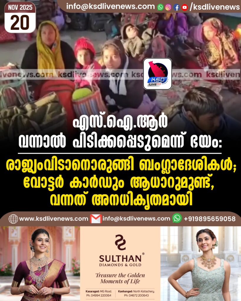 എസ്.ഐ.ആർ വന്നാല്‍ പിടിക്കപ്പെടുമെന്ന് ഭയം: രാജ്യംവിടാനൊരുങ്ങി ബംഗ്ലാദേശികള്‍; വോട്ടര്‍ കാര്‍ഡും ആധാറുമുണ്ട്‌, വന്നത് അനധികൃതമായി