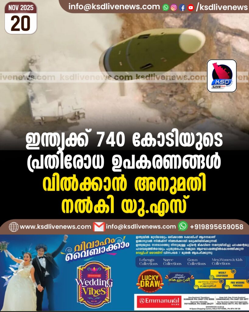 ഇന്ത്യക്ക് 740 കോടിയുടെ പ്രതിരോധ ഉപകരണങ്ങൾ വിൽക്കാൻ അനുമതി നൽകി യു.എസ്