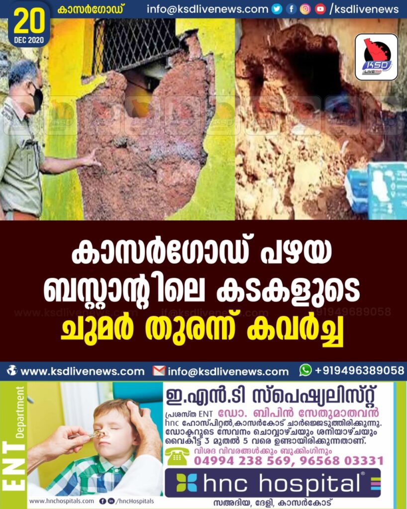 കാസർഗോഡ് പഴയ ബസ്റ്റാന്റിലെ കടകളുടെ ചുമർ തുരന്ന് കവർച്ച